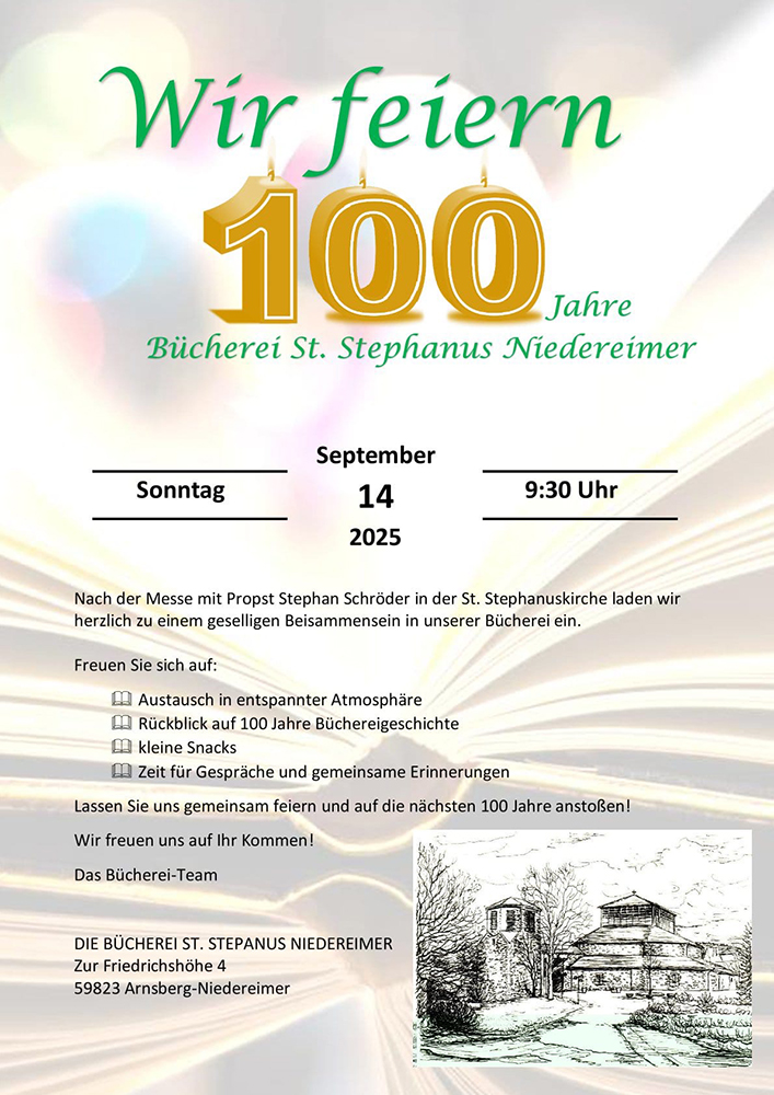 Der Immobilienprozess der Propsteipfarrei St. Laurentius Arnsberg macht auch vor Niedereimer keinen Halt! Deshalb lädt die Kirchengemeinde alle Einwohner aus Niedereimer zu einer Infoveranstaltung ein.