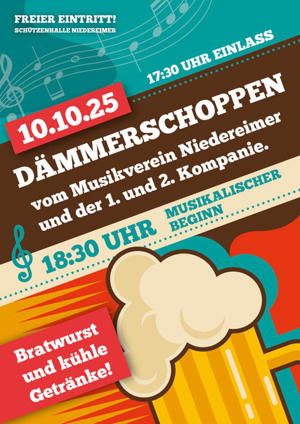 Am 10. Oktober 2025 laden der Musikverein sowie die 1. und 2. Kompanie herzlich zum gemeinsamen Dämmerschoppen ein.