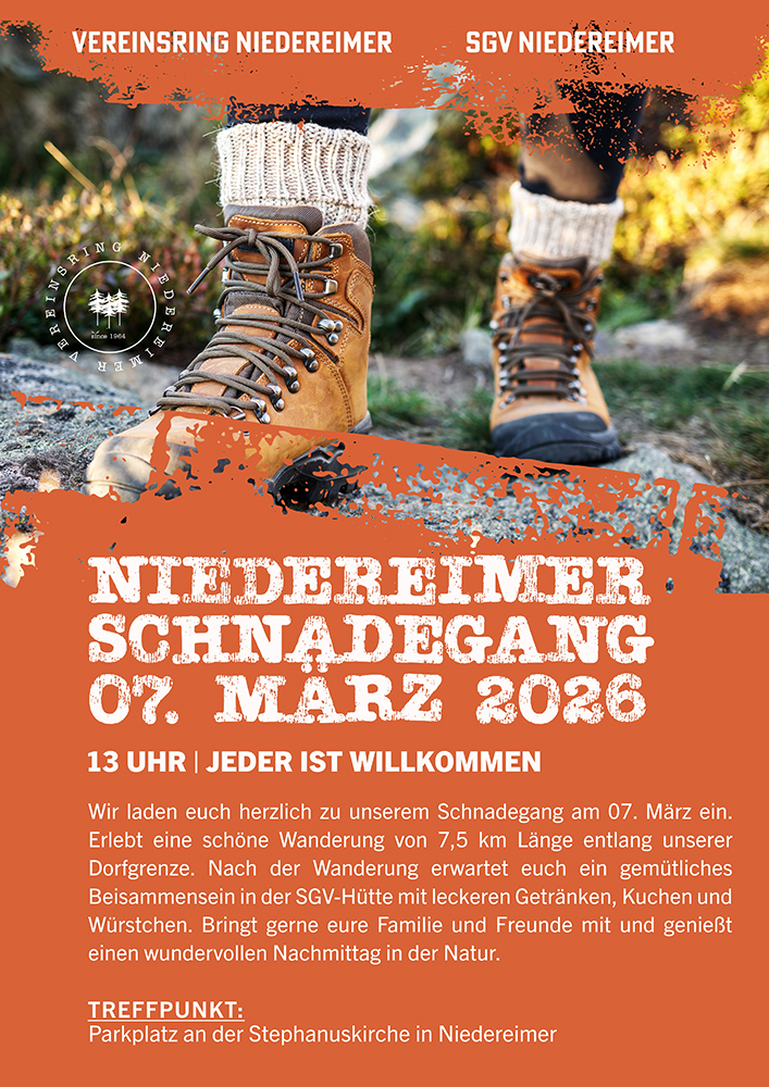 der Vereinsring Niedereimer und der SGV Niedereimer laden euch herzlich ein zum diesjährigen Schnadegang am Samstag, den 7. März!